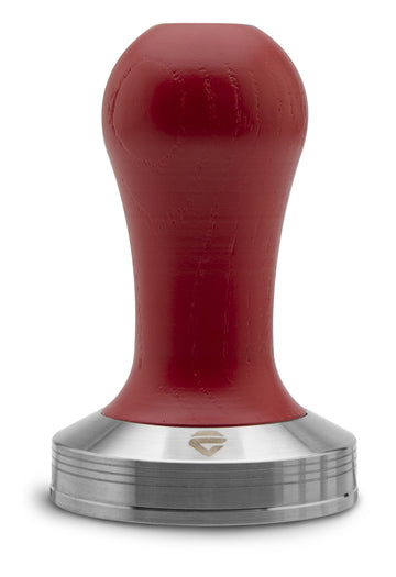 Tamper with a professional red wooden handle and stainless steel base for a long-lasting product. For machines with LELIT58 group.